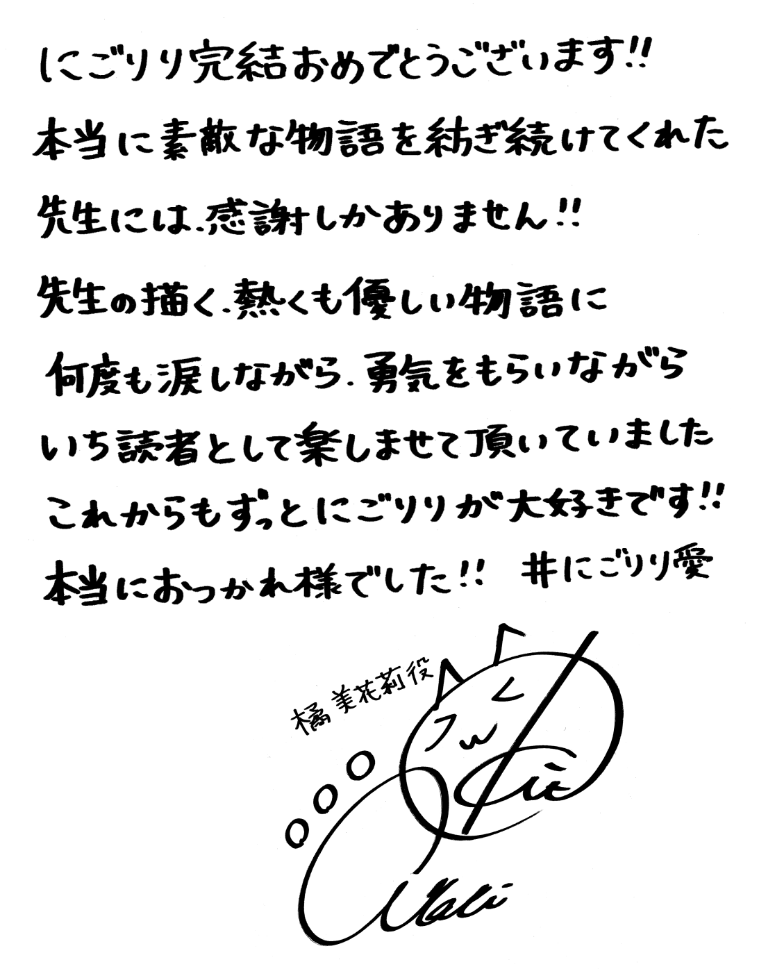 先生!「2.5次元の誘惑」を本当に有難うございました!!いつまでも「にごリリ」が大好きです。愛を持って、